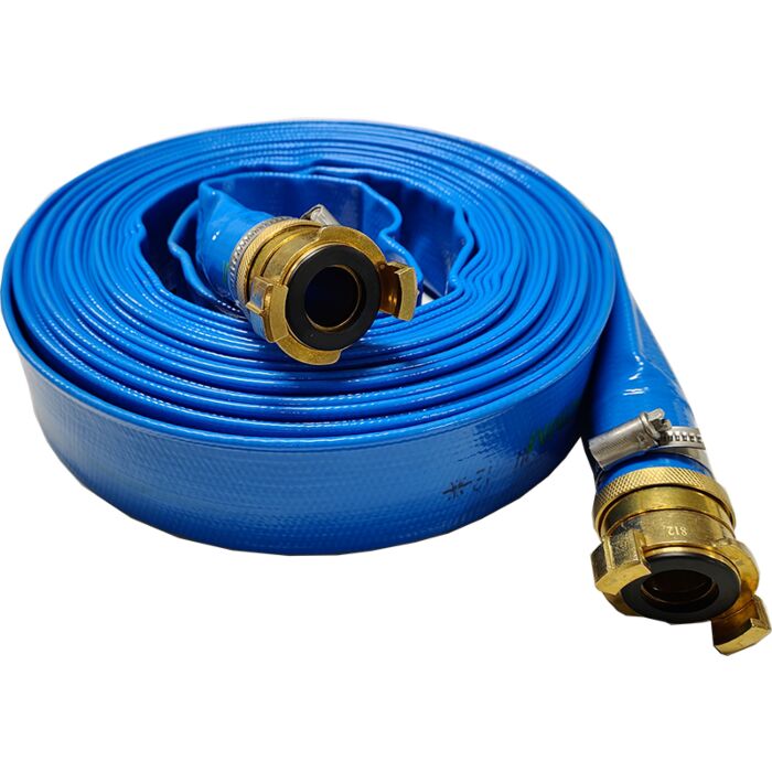 Voorgemonteerde plat oprolbare slangset 32 mm lengte 15 meter met geka koppelingen.